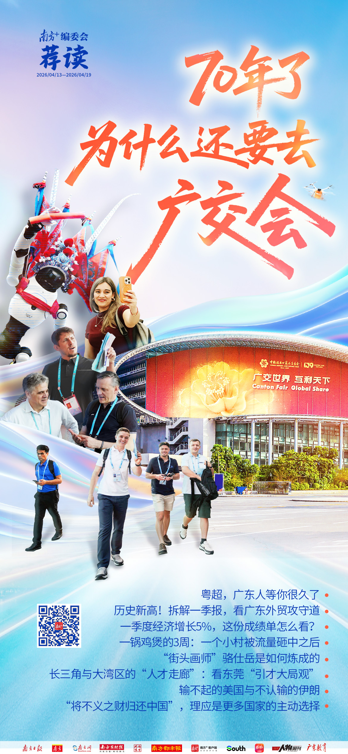 “十五五”开局之年,广东外贸迎来“开门红”。根据海关总署广东分署最新披露,一季度进出口创季度规模新高,首次突破2.5万亿元人民币,增长19.4%,在全国份额(21.5%)、增量(4127.9亿元)、贡献率(26.7%)三方面全部领跑。同一时间,70年风华正茂的广交会现场人潮涌动。如果说一季度广东外贸斩获一份不错的“成绩单”,广交会则是未来的“订货会”,两者结合起来看,既有稳健的基本面,也呈现出三方面惊喜。详情>>