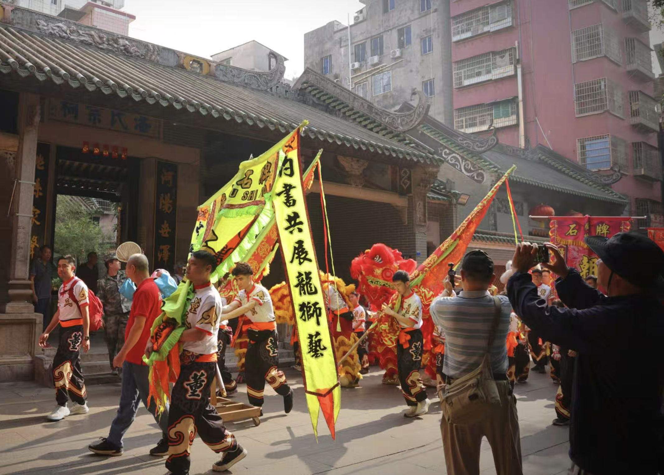 不少乡亲从各地返乡赴会,新老石牌人齐聚一堂,共同见证民俗盛典。观众热情高涨,现场欢呼声不断,浓厚的乡情与烟火气弥漫街巷。当日傍晚,答谢晚宴如期举行,乡亲们欢聚一堂、共品佳肴,醒狮助兴、笑语满堂,在烟火温情中延续邻里情谊与村落向心力。